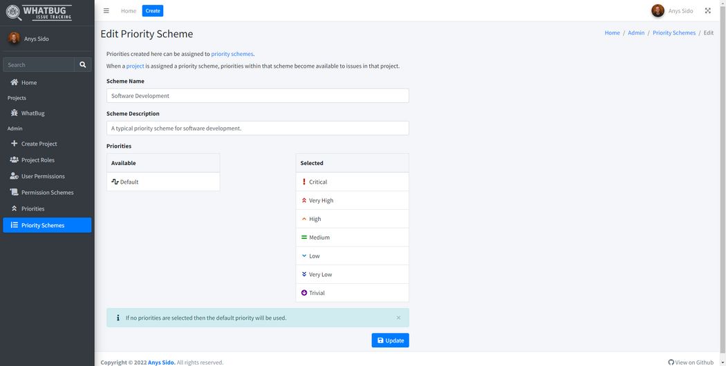 Priorities can be created that can be assigned to issues within projects. These priorities can be assigned to priority schemes.